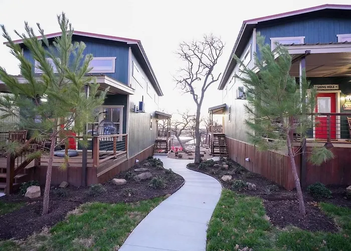 A Campqyb- Modern Lux Cabin Hot Tub Firepit Games Runaway Bay, localizada 2.7 km de First Baptist Church, convida os hóspedes a relaxar com sauna.